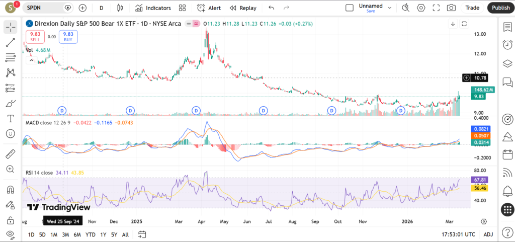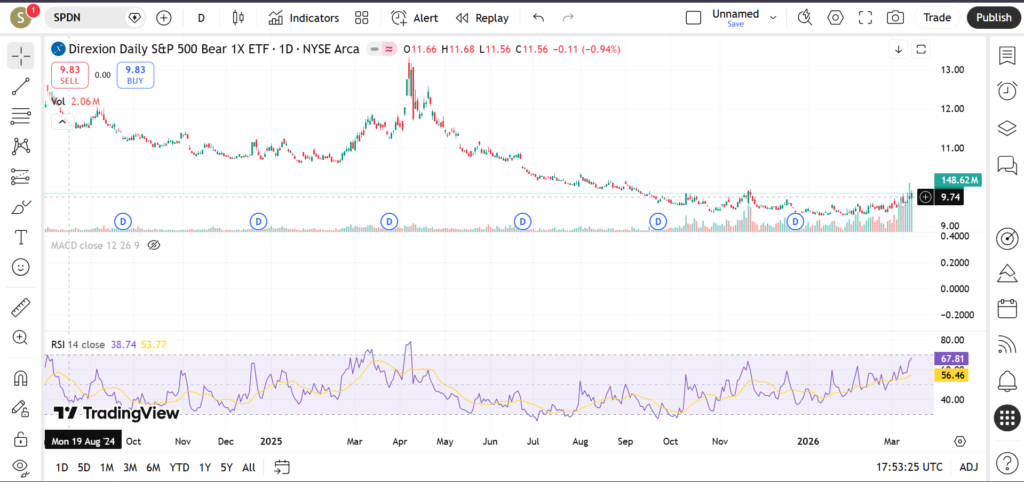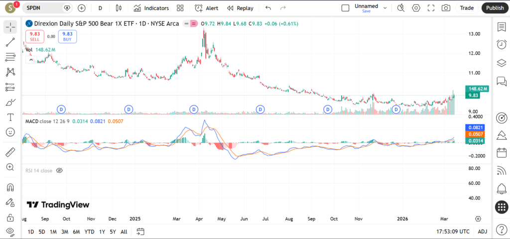 In March 2026, SPDN is on traders’ radar as markets reassess interest‑rate expectations, inflation trends and recession risks. This article walks through SPDN’s current trend, key support and resistance zones, and popular indicators such as RSI, MACD and volume so traders can better frame bearish or hedging strategies without relying on gut feeling alone.