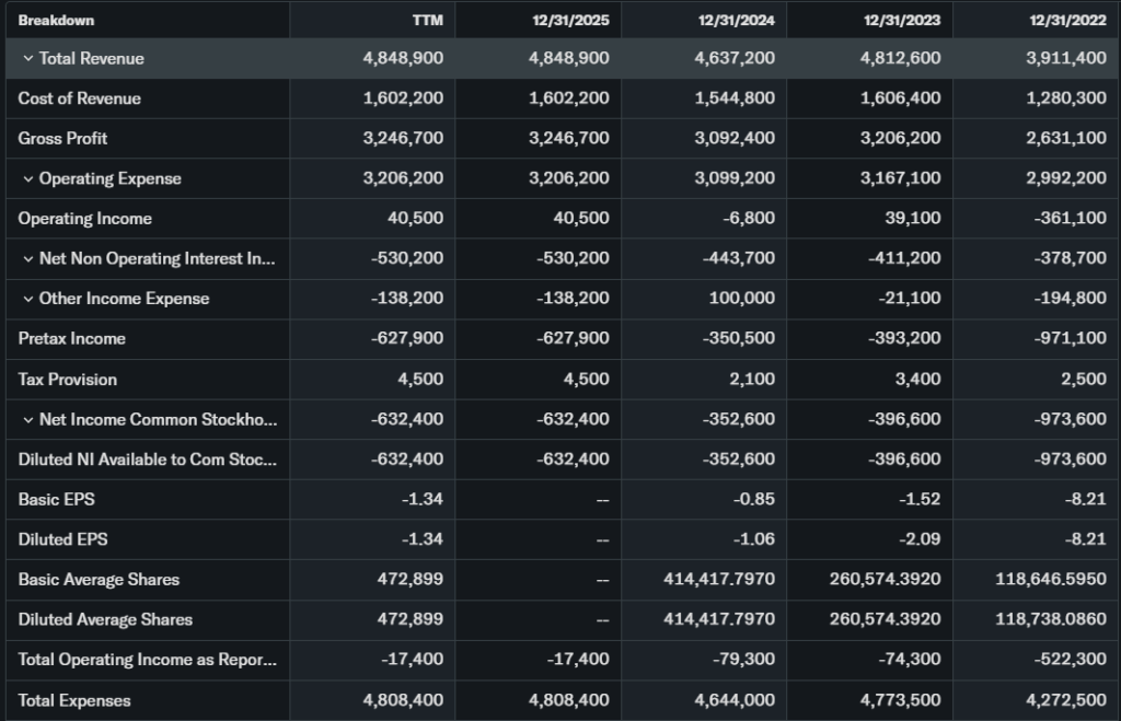 Trailing P/E sits negative at -0.86 due to losses. Forward P/E not meaningful yet. Price-to-Sales around 0.2, very low.