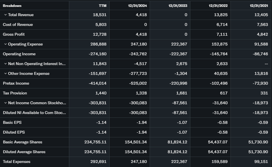 Revenue exploded +1,505% YoY to $70.92M; net loss -$341.94M. Free cash flow negative; 382M shares dilute heavily.