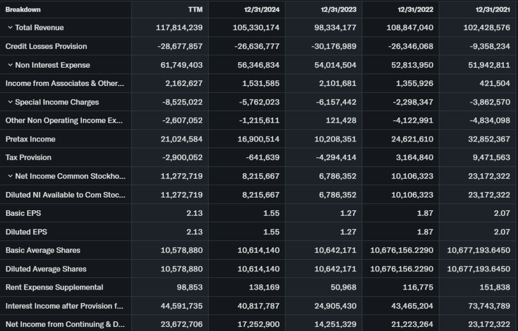 Trailing P/E 9.74 low. Q4 recurring income BRL 6.5B +20.6% YoY. Assets BRL 2.3T, equity BRL 179B.