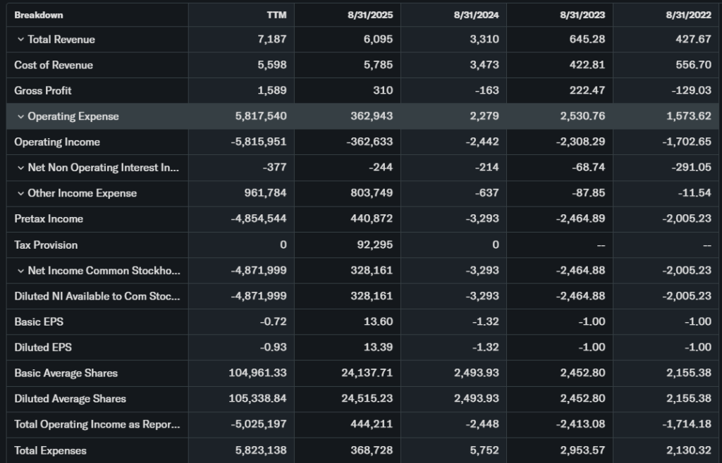 Free cash flow improves with ETH holdings at 4.4M tokens ($9.6B value). Debt stays low, cash strong from treasury. Vs. peers like MicroStrategy, BMNR trades below 1x book value, undervalued if staking delivers.