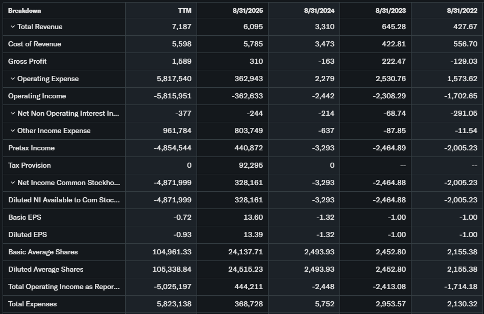 Free cash flow supports rig expansions. Debt position manageable with Bitcoin collateral. Compared to Riot/Marathon, BMNR appears overvalued on traditional metrics but justified by digital assets.
