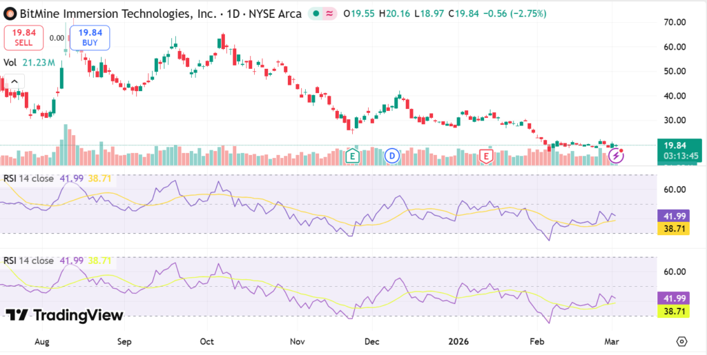 BMNR stock closed at $18.98 on February 27, 2026, per last market data. The 1-day performance dropped 7.14%.
