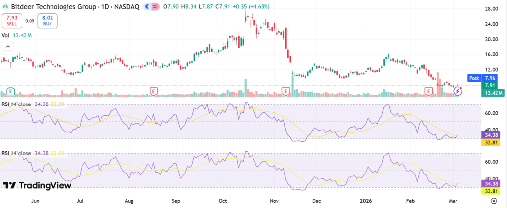 Technicals point to $27-$28 tests if volume holds. Momentum supports mild gains barring Bitcoin drops. Watch RSI for overbought signals in BTDR technical analysis.