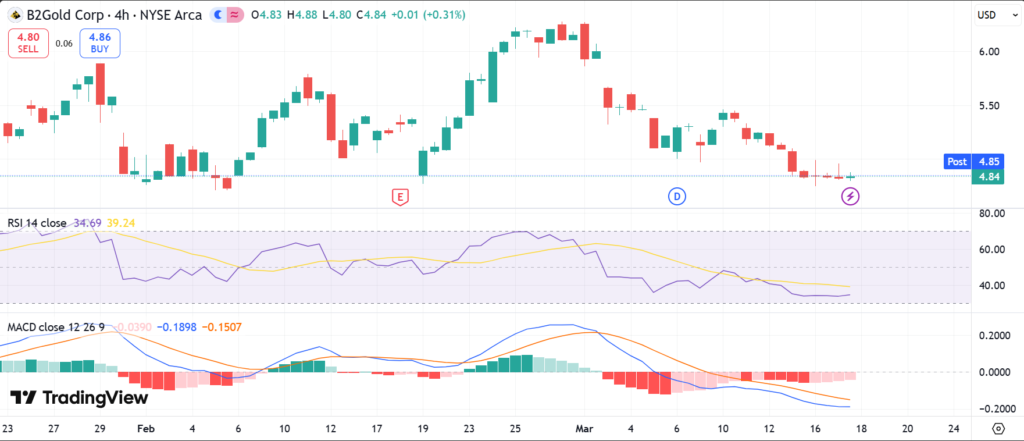 BTG stock closed at $5.25 on the last market session. It rose 0.8% over one day amid gold price gains. The five-day trend shows a 4.6% climb on steady volume.