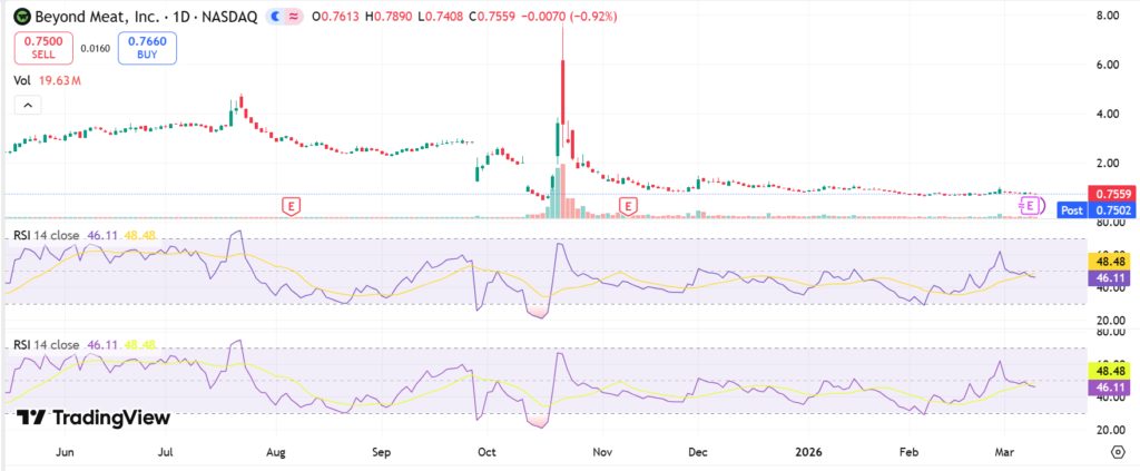 As of last market close on March 10, 2026, BYND stock price stands at $0.86.