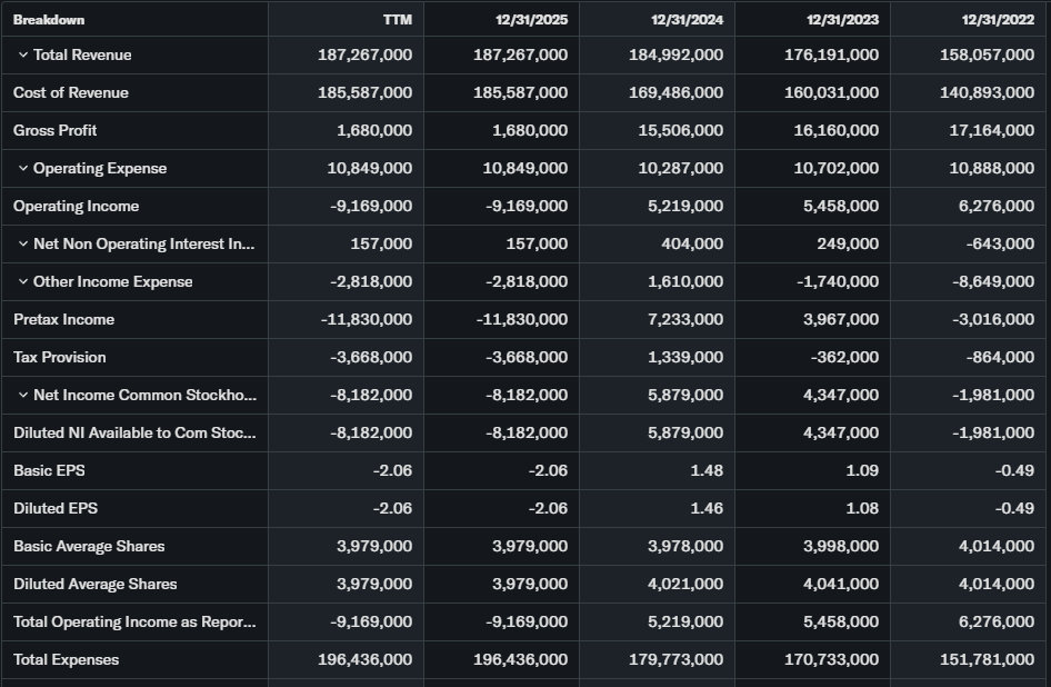 Trailing P/E 7.2 on $1.68 EPS, forward P/E 6.5. Price-to-sales 0.3x with flat revenue around $175 billion. YoY revenue steady, EPS down 10%.