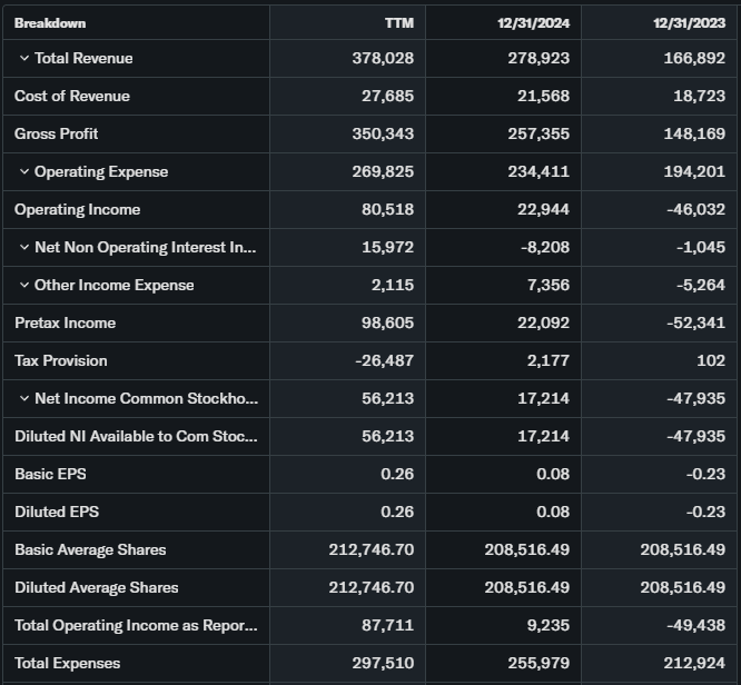 Revenue $432M TTM, +47.6% YoY growth. Net income $133.86M exploded +677%.