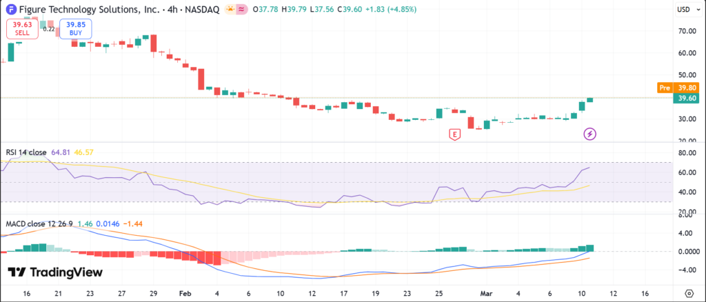 FIGR stock closed at $32.40 on March 10, 2026, per last market data. It ranged from $32.00 to $40.10 that day, up 1.3% from prior levels. The 1-day performance showed modest gains amid volatility.
