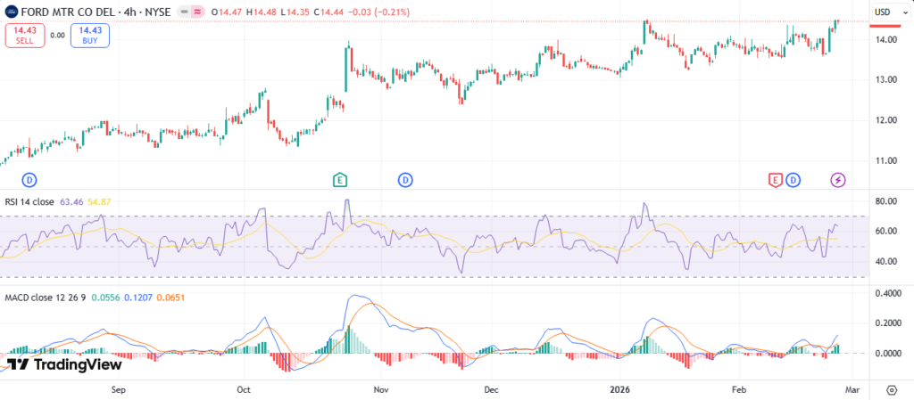 Ford technical analysis summary? Bullish MACD, neutral RSI.