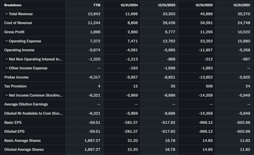 Q3 2025 revenue hit $3.5M roughly, missing expectations with EPS -$25.20 vs -$13.20 forecast. Gross margin improved to 17.7%, but net loss widened.