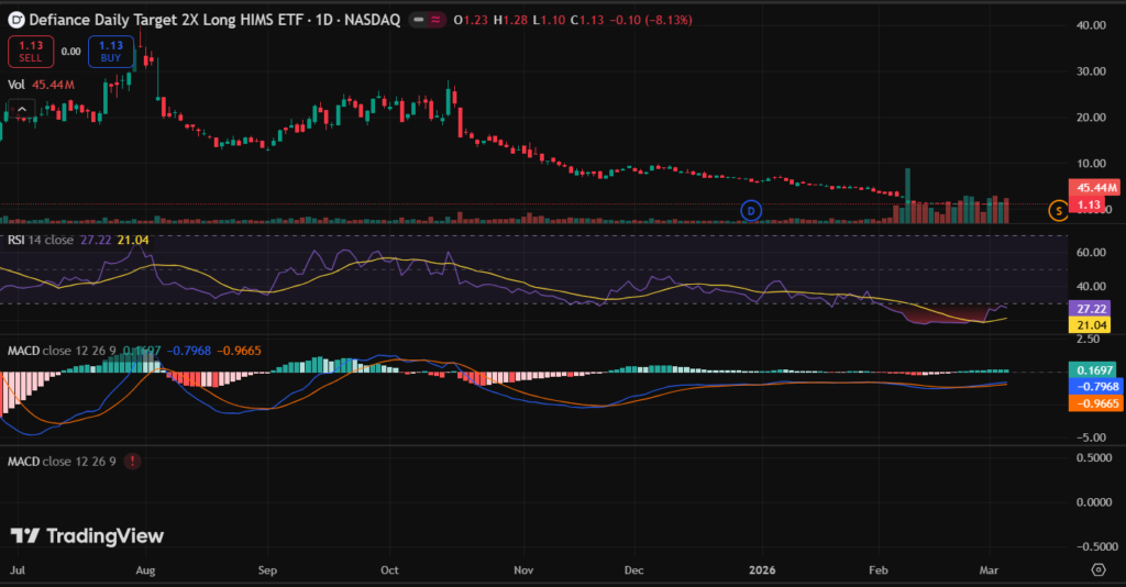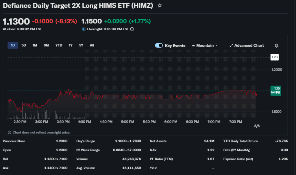 HIMZ ETF closed around $1.25 on March 3, 2026, after volatile swings.