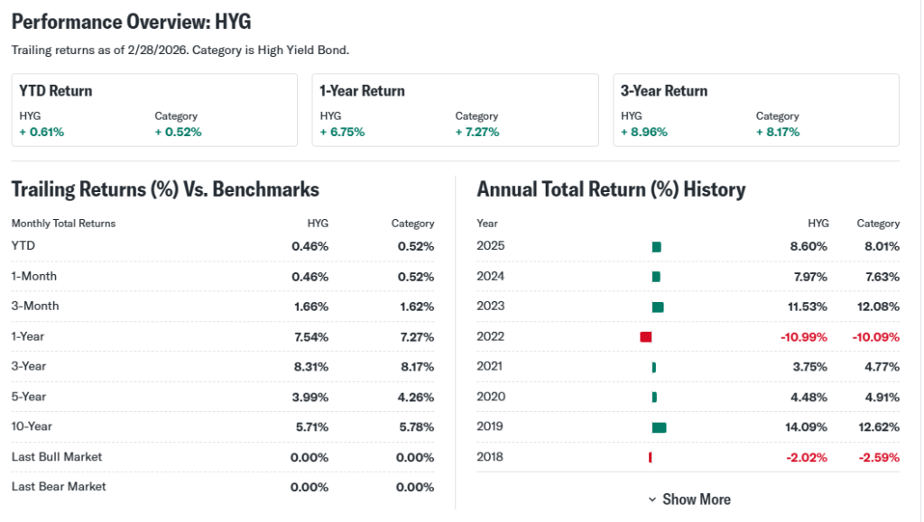 Hold HYG ETF for income in portfolios. Yields shine but credit risks balance gains. Suits diversified investors.