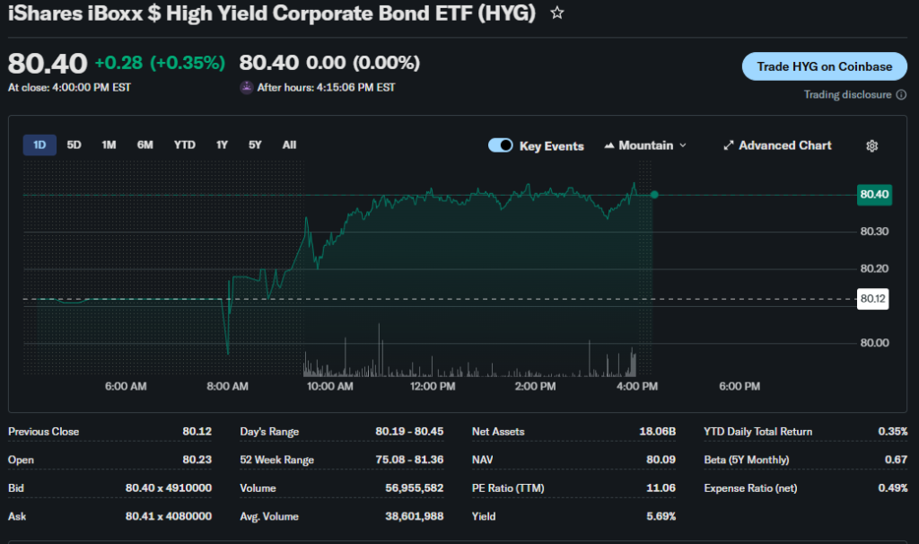 HYG ETF price may hover near 80.20 amid Fed watch.