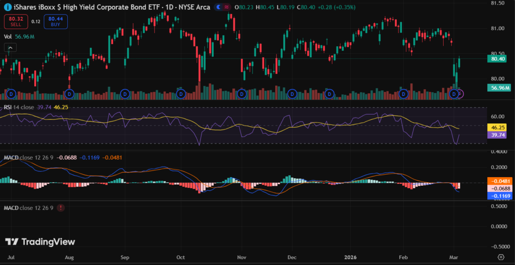 Last market close on March 4, 2026, put HYG ETF at 80.22. It dipped 0.55% that day from 80.72. Range hit 80.06 low to 80.41 high.
