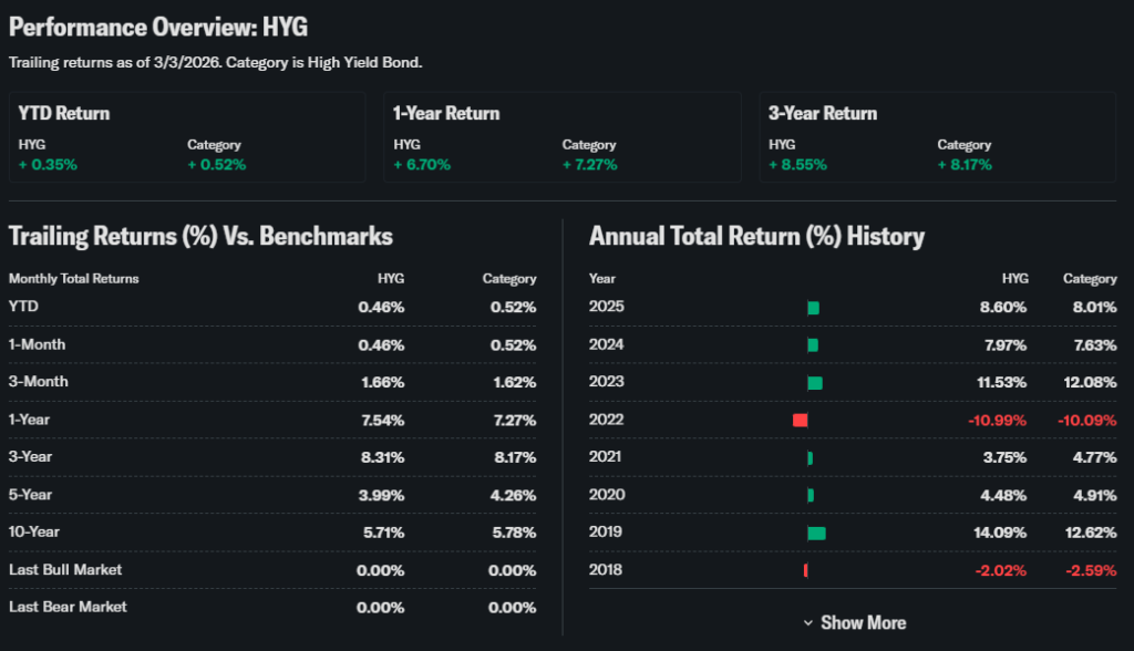 No traditional earnings for HYG ETF. Holdings reported Q4 2025 coupons steady. Payouts met benchmarks.