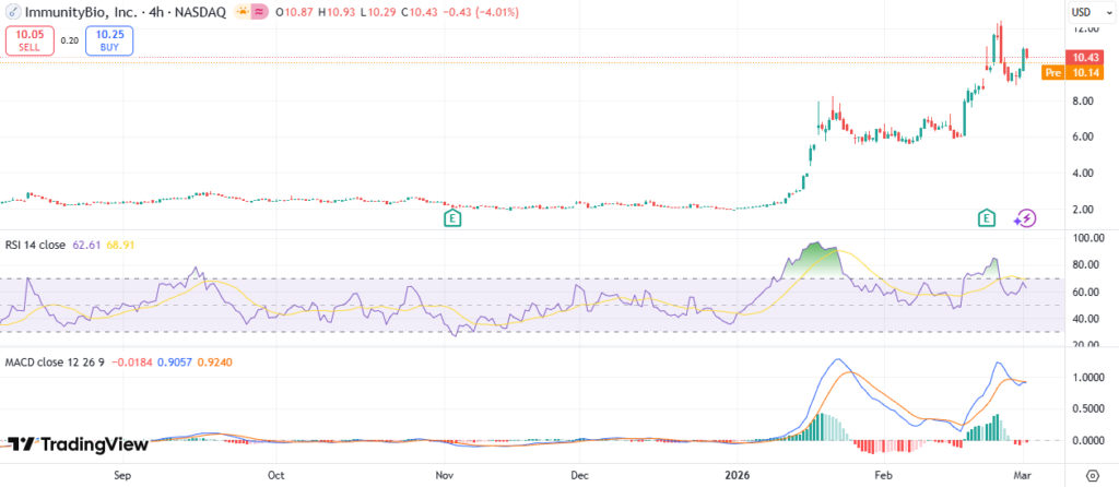 One-month performance climbed over 30% from February lows around $8. Three-month trend points up 50%, driven by Q4 results. Year-to-date, IBRX stock gained 25%, beating biotech peers. The 52-week high hit $10.98 recently; low was $3.50 last year.