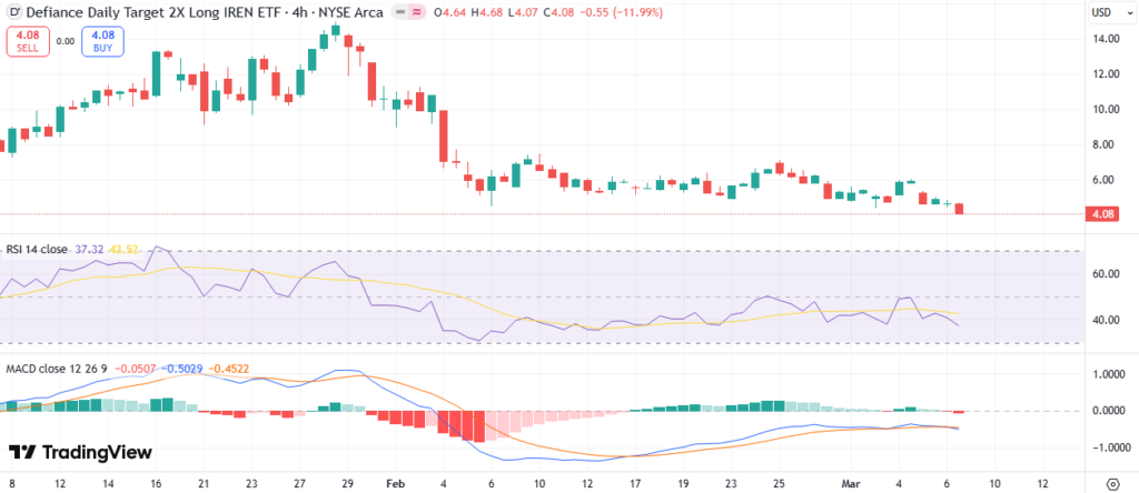 As of last market close on March 5, 2026, IRE ETF trades at 4.93, down sharply from 5.94 prior close.