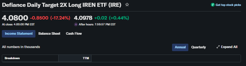 Leveraged ETFs like IRE skip traditional P/E; focus on NAV tracking IREN’s metrics.