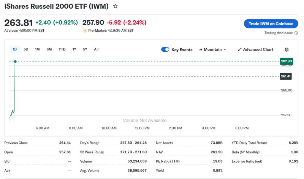 IWM ETF closed at $263.81 on March 2, 2026.
