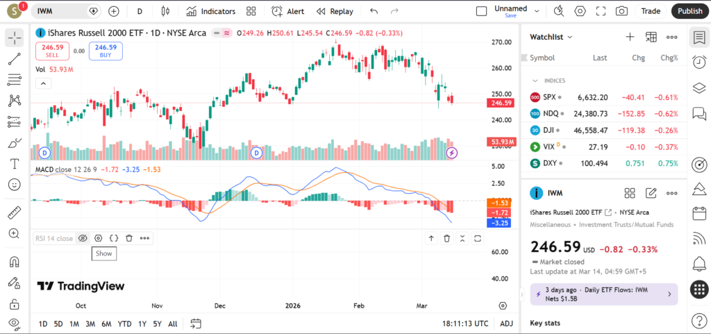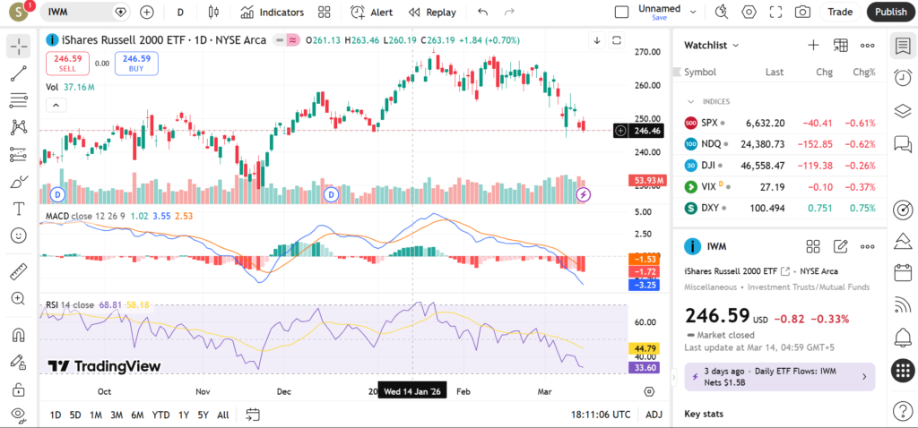 In March 2026, IWM is drawing attention as market participants evaluate the outlook for smaller companies amid interest-rate uncertainty and shifting economic expectations. Small-cap stocks historically perform well during periods of economic expansion but may struggle when borrowing costs rise or growth slows. This article explores IWM’s current price trend, key support and resistance levels, technical indicators, and the short-term outlook traders are monitoring in March 2026.