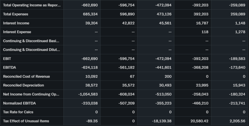 Trailing P/E is negative at -8.94 due to losses. Forward P/E stays negative. Price-to-sales ratio exceeds 157,000x on low revenue—typical for pre-profit firms.