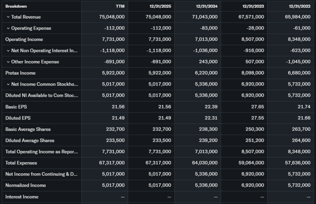 Trailing P/E stands at 22x, forward at 19x. Price-to-sales is 1.8x, with YoY revenue up 8% to $71B.