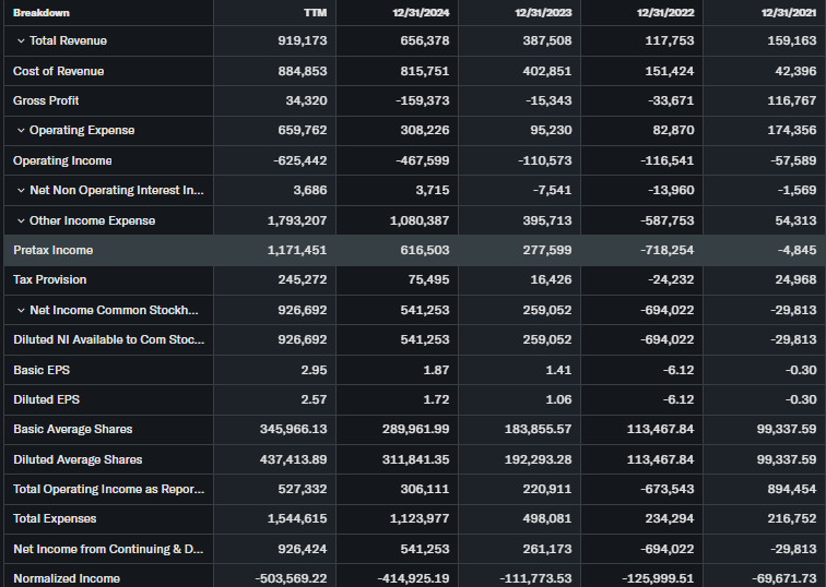 Trailing P/E is 4.46, low for growth stocks. Forward P/E around 3.28 reflects expected earnings. Price-to-sales is modest given revenue jumps. 2024 revenue grew 69% to $656 million YoY; Q3 2025 hit $252 million, up 92%.