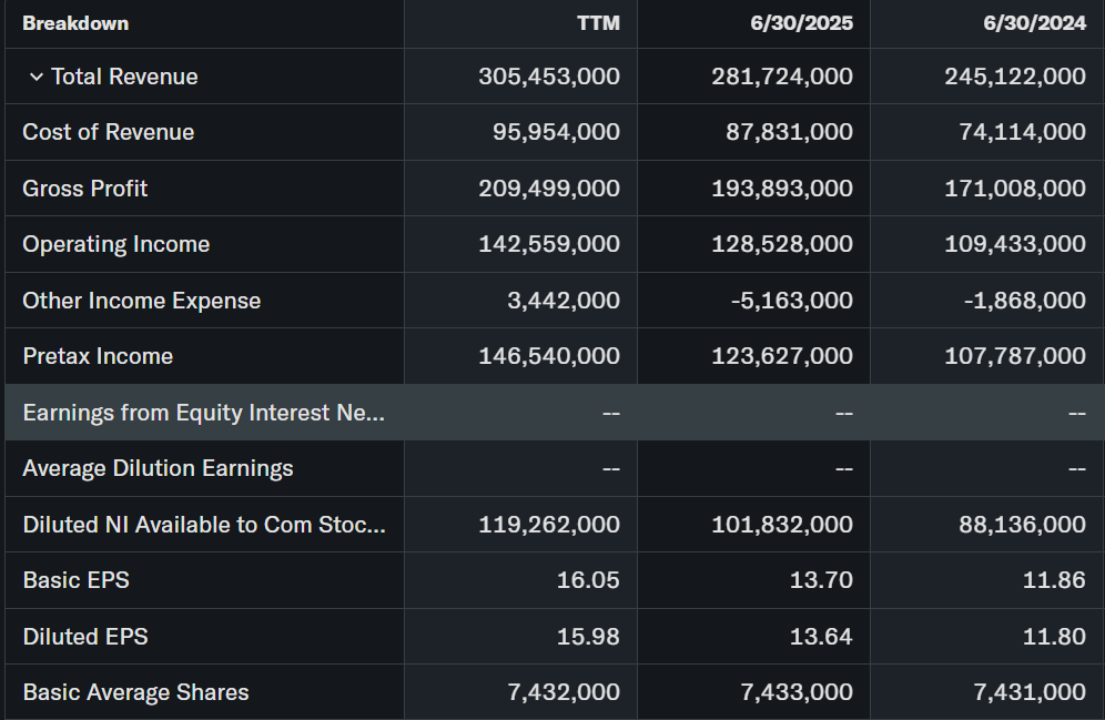 Strong business model, 49% margins. Industry grows 15% cloud. Competitive moat wide. [code_file:MSFT_quarter_income_statement_0fb110.csv]