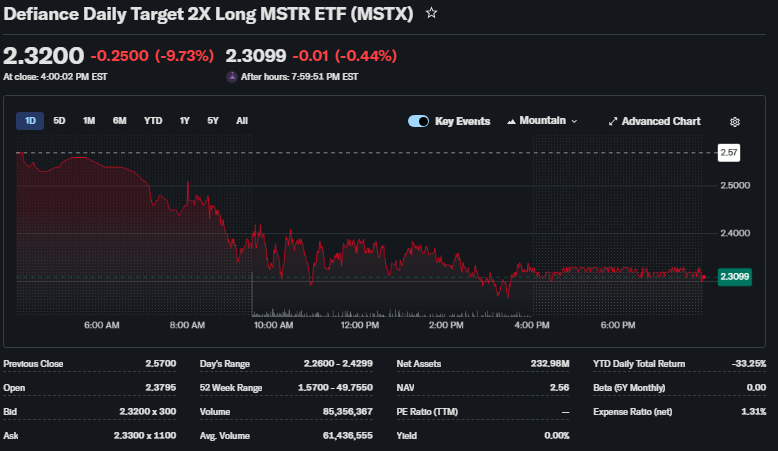 Investors watch MSTX ETF closely now due to Bitcoin’s wild swings and MicroStrategy’s massive BTC holdings.