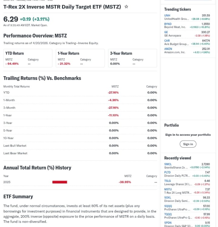 This means when MSTR falls, MSTZ is designed to rise, and when MSTR rises, MSTZ typically falls.
