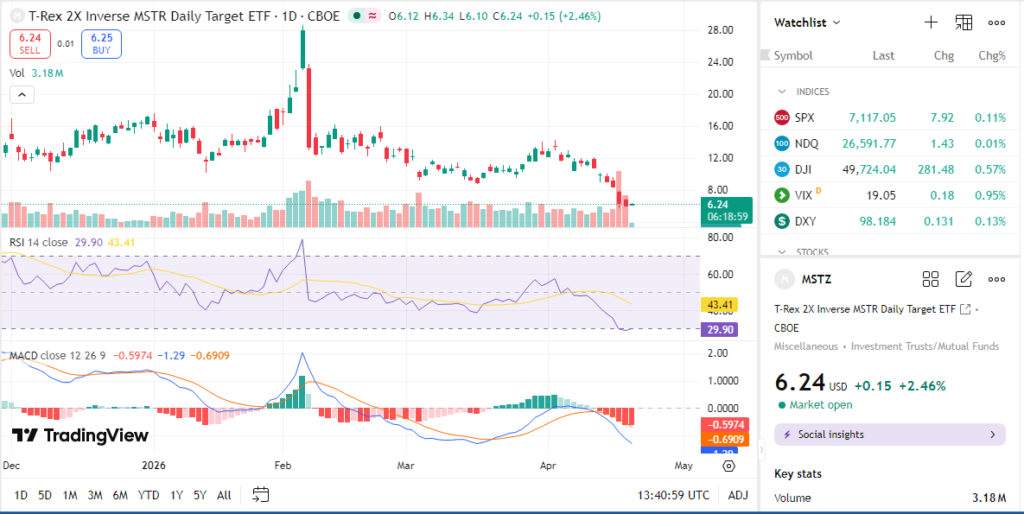 Investors use MSTZ ETF mainly for short-term trading or hedging against volatility in Bitcoin-related equities, since MicroStrategy holds large Bitcoin exposure.