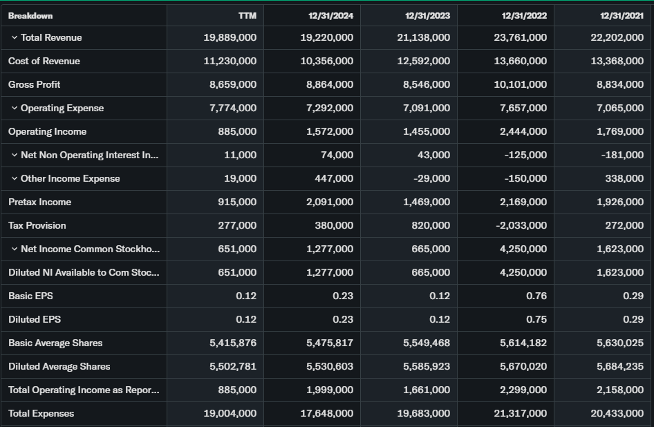 Revenue up 3.5% YoY to $23.35B TTM; net income $764.35M down 49%. Dividend $0.11 (1.39%). Cash healthy; debt manageable.
