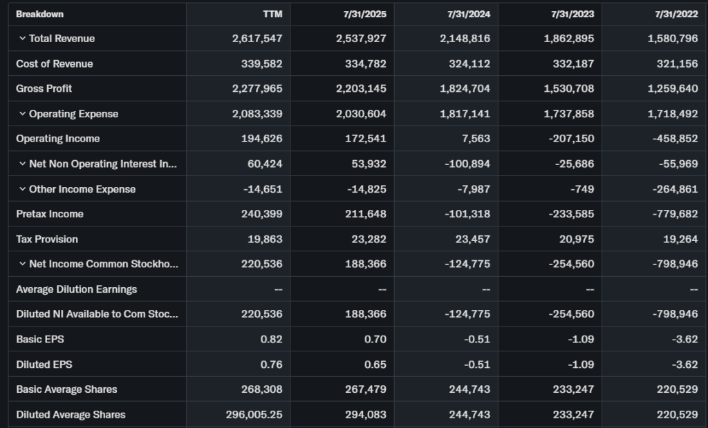 EPS growth hit 107% quarterly YoY. Free cash flow strong at $191M in Q2, $745-775M yearly guide. Cash at $2.06B tops $1.49B debt, net cash $577M.