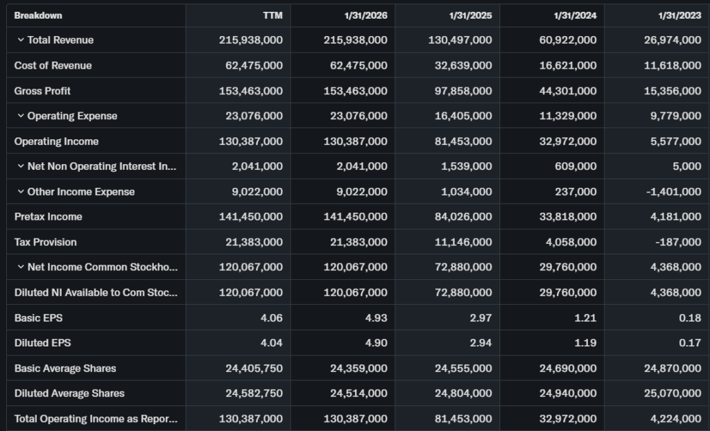 Earnings per share (non‑GAAP) were strong, with diluted EPS near $4.75–4.90 for the year, up more than 60% year‑over‑year, while gross margins remained above 70%, highlighting pricing power and manufacturing efficiency. The company beat both revenue and EPS expectations, but the stock initially wobbled on concerns about slowing growth and valuation rather than weak fundamentals.