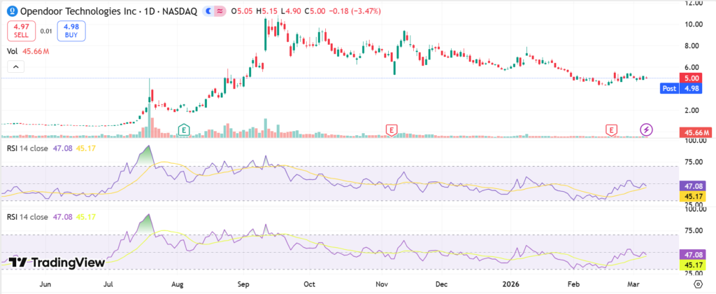 Year-to-date, OPEN stock rose 27% from $4.26 lows, despite 32% drop from $7.92 high. The 52-week range spans $0.51 low to $10.87 high, signaling high volatility.