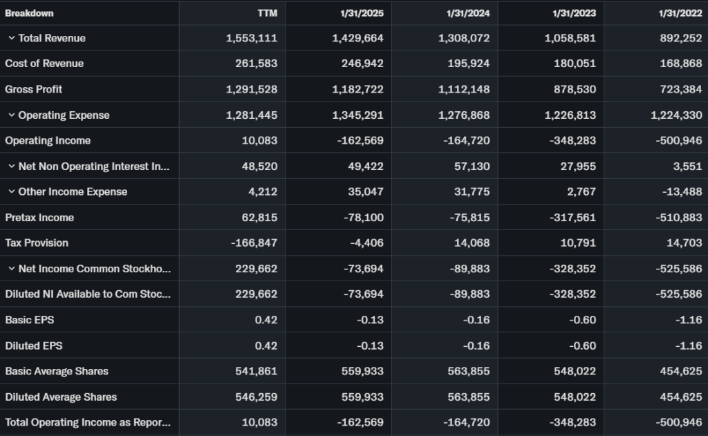 Trailing P/E 25.55. Q3 revenue $411M +16% YoY beat, EPS $0.03. Cash $1.4B no debt. FCF positive $370M FY guide.