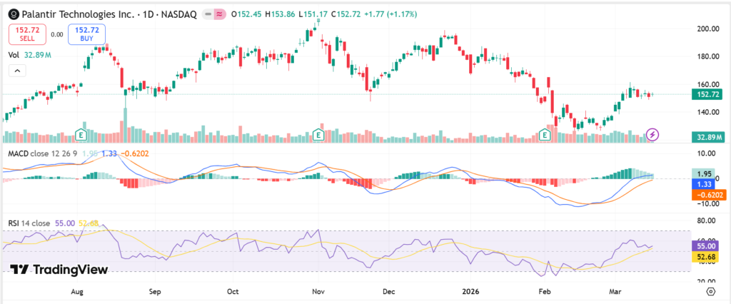 Year-to-date, PLTR stock surges 89%. 52-week high reaches $207.52; low at $66.12. Overall trend stays bullish. This signals strength for investors eyeing AI plays.