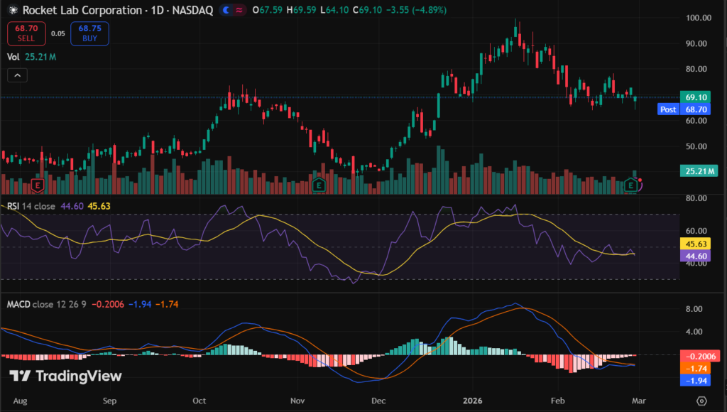 RKLB stock closed at $66.85 last session. It gained 3.49% in one day.
