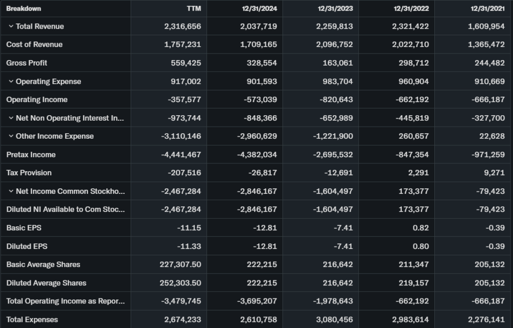 Trailing P/E -1.17; EPS -$11.33.[code_file:RUN_quotes_973df1.csv] P/S low.
