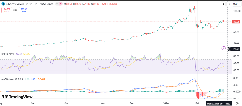 - Current price: SLV trades around the low to mid-80s in recent sessions, with prices fluctuating as silver markets move. (Source snapshots from multiple data aggregators indicate SLV’s price area in the 78–82 range during the latest observations.)