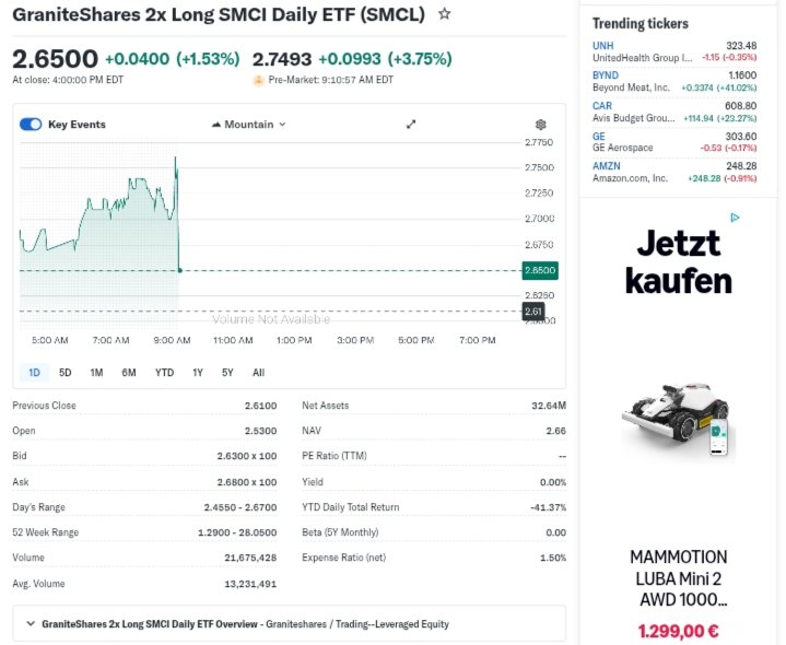 SMCL ETF is a highly volatile leveraged product designed for short-term exposure to SMCI.