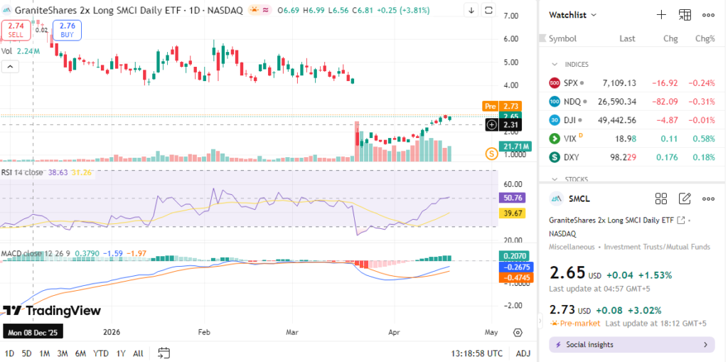 It is built for short-term traders who want amplified exposure to SMCI, a company strongly tied to AI server demand and high-performance computing infrastructure.