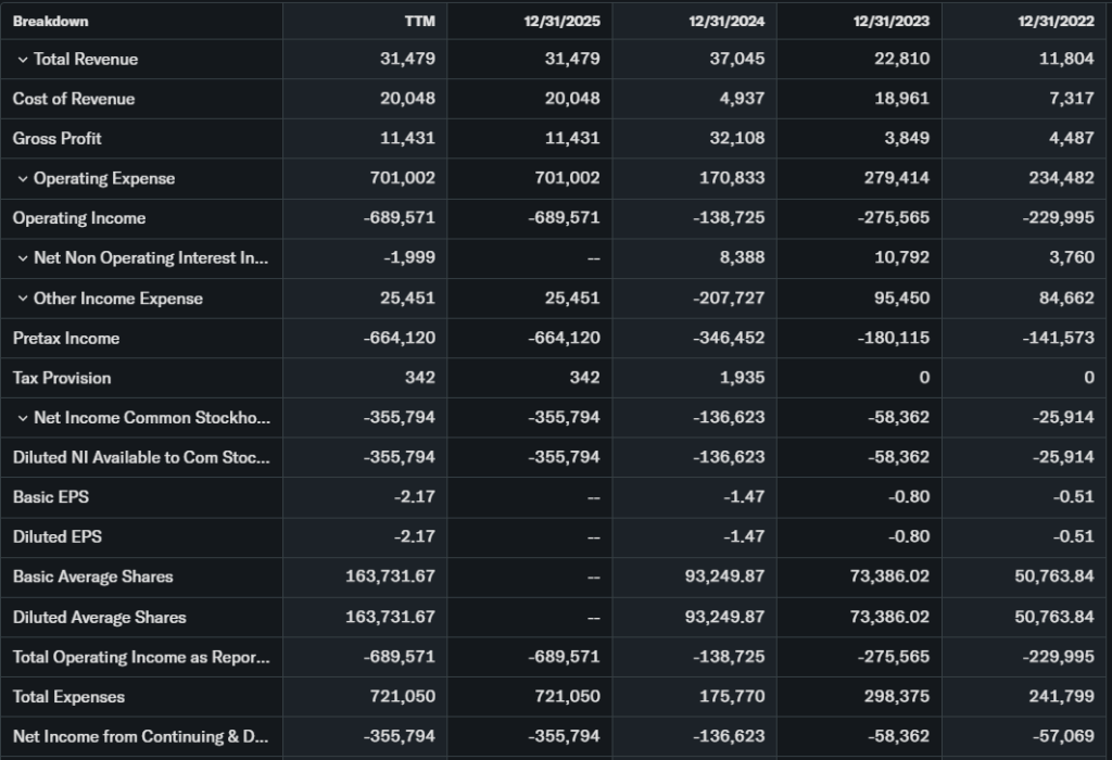 Q4 revenue hit $1.81 million, missing $8.76 million estimates. EPS disappointed versus forecasts, dragging shares. Forward guidance projects -0.73 EPS for 2026.