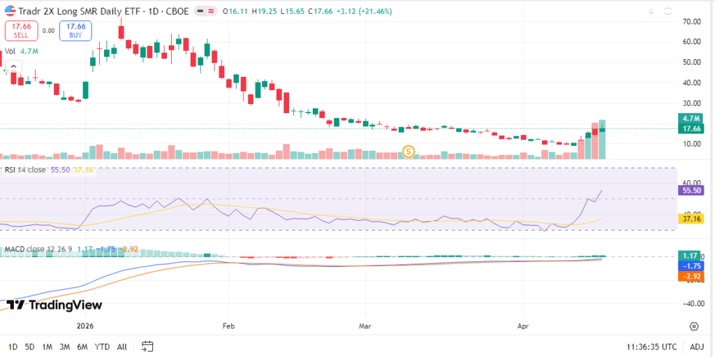 Over five days, SMU ETF price showed sharp swings, up from recent lows around $14.50. The one-month trend remains volatile but leans upward amid SMR interest.kraken+1