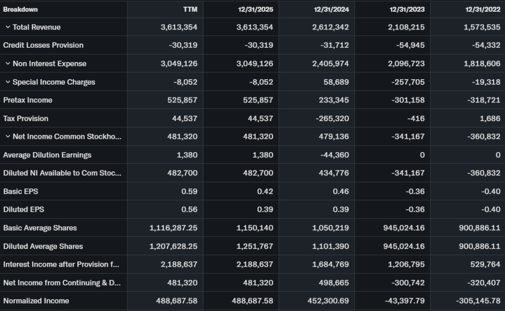 EPS Q4 $0.05 GAAP first profit; FCF positive. Vs. fintech peers, undervalued on trajectory. Appears undervalued.