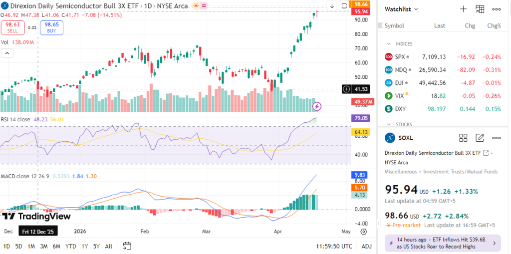 RSI reading unavailable here, but overbought risks in leveraged ETFs matter for entry timing.