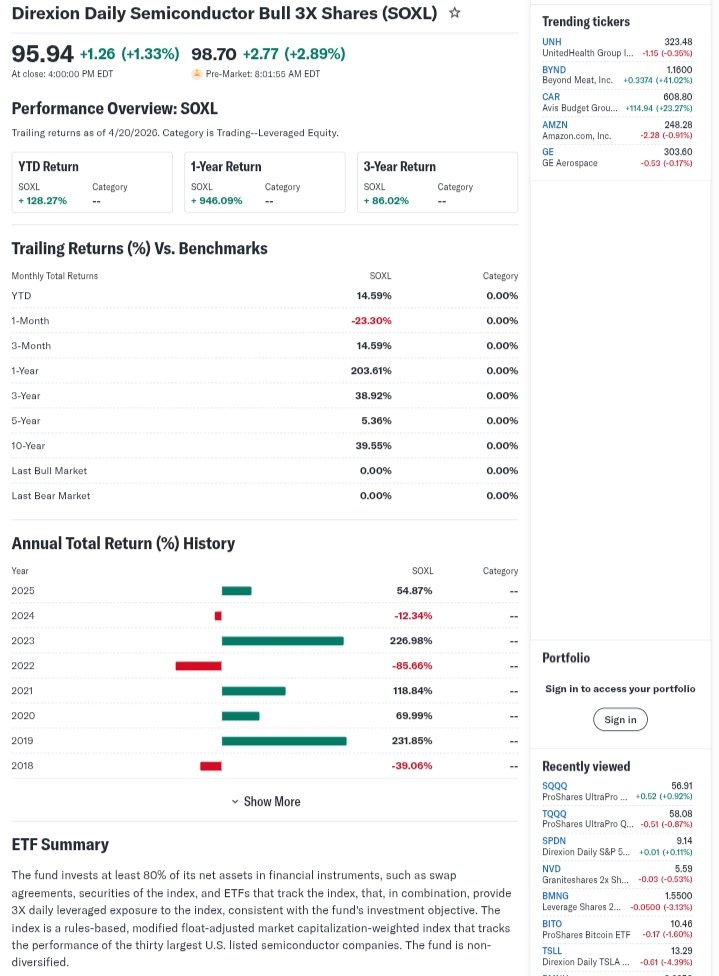 Explore SOXL ETF price, technical analysis, forecast, and buy ratings. Get insights on Direxion Daily Semiconductor Bull 3X ETF performance and risks as of April 2026.