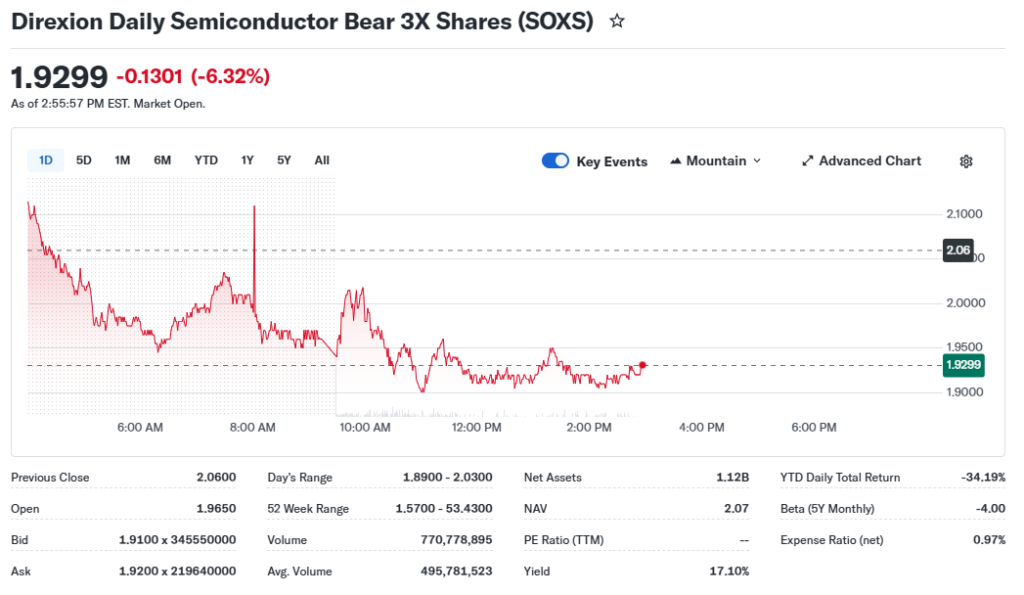 Investors watch SOXS ETF now as AI-driven semiconductor stocks rally hard, boosting inverse plays like this one.