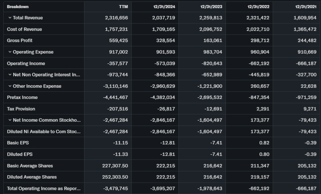 Trailing P/E unavailable due to negative EPS of -$10.85 to -$11.59. Forward P/E not calculable yet.